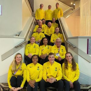 Dr. Walter Hubmann betreute die Deutsche Nationalmannschaft der Leichtathleten bei der Hallen-WM in Glasgow vom 01. bis 03. März 2024. Das kleine aber feine Team mit 7 Athleten schlug sich hervorragend. Nach einer mageren WM 2023 in Budapest ohne Medaillenplätze überraschte Yemisi Ogunleye mit einer Steigerung ihrer bisherigen Bestleistung im Kugelstoßen um 62cm auf 20,19m und sicherte sich damit die Silbermedaille. Die von Dr. Walter Hubmann auch in seiner Praxis in Freiburg betreute Athletin war selbst total geflasht von dieser gleich im ersten Versuch erzielten Leistungsexplosion und schockte damit auch ihre etablierten Konkurrentinnen.